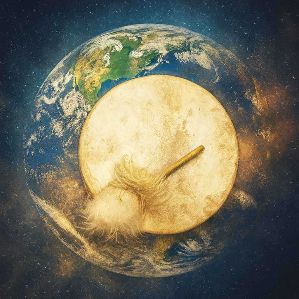 « One Beat One Earth » is a community of human beings who come together and perform collective ceremonies of anchoring and energetic harmonisation, based on the power of the drum in resonance with Mother Earth.